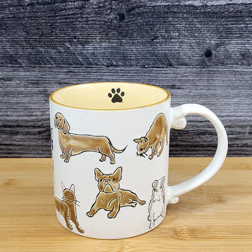 English Bulldog Coffee Mug Ceramic Dog Bully Breed Cup Blue Sky Embossed 18 oz