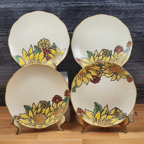 There are no chips, nicks in the ceramics or artwork. Minor surface blemishes from prior gentle use.Description: Tan Flowers On Brown, Green BandEarthenwareCrafted In USAHand Wash Width: 7 in (17cm...