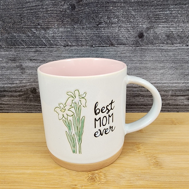 Best Mom Coffee Mug Ceramic Embossed White Tea Cup Mother by Blue Sky