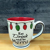 Eat Drink & Be Merry Holiday Mug 17oz 455ml Embossed Christmas Tea Cup Blue Sky