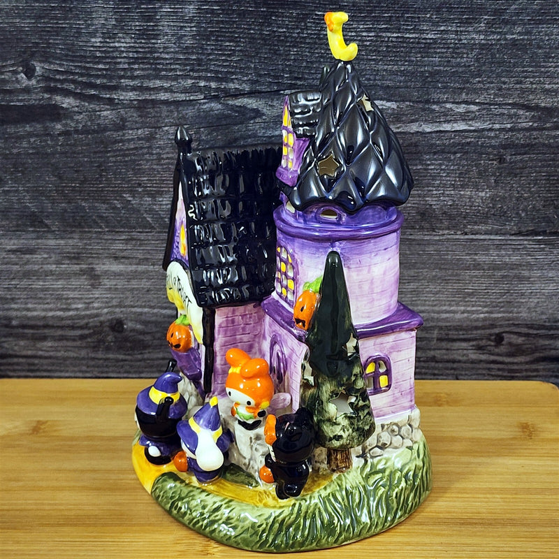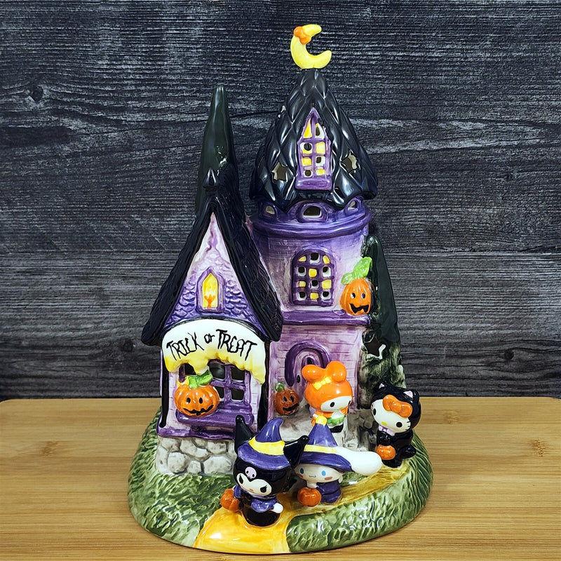Add a touch of spooky-cute charm to your Halloween decor with this Sanrio Hello Kitty & Friends Trick or Treat Candle House! This delightful ceramic piece features a whimsical haunted house in purple and black tones, decked out with jack-o’-lanterns, stars, and a crescent moon chimney. Dressed in their Halloween best, Hello Kitty, Kuromi, My Melody, and Cinnamoroll are ready for a night of trick-or-treating!