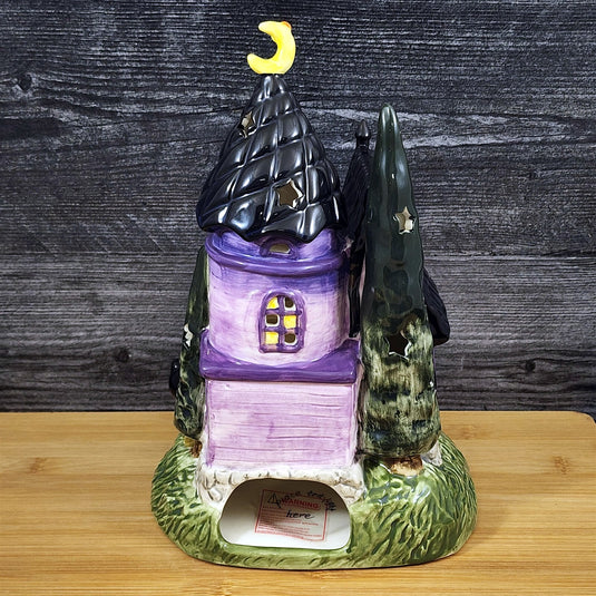 Designed to hold a tealight or LED candle (not included), this piece lights up beautifully from within, creating a festive glow perfect for a Halloween mantel, table, or display shelf.
