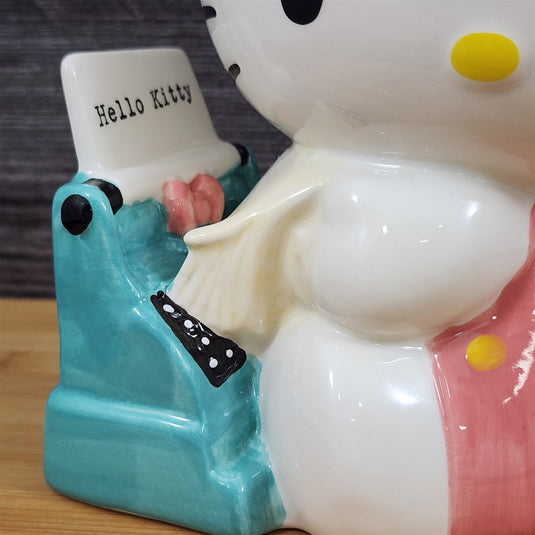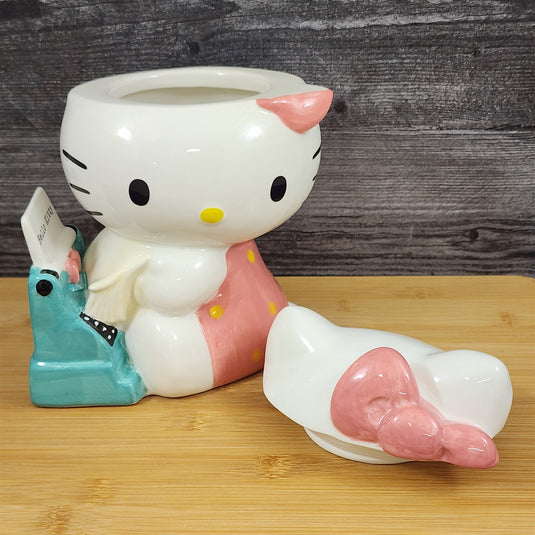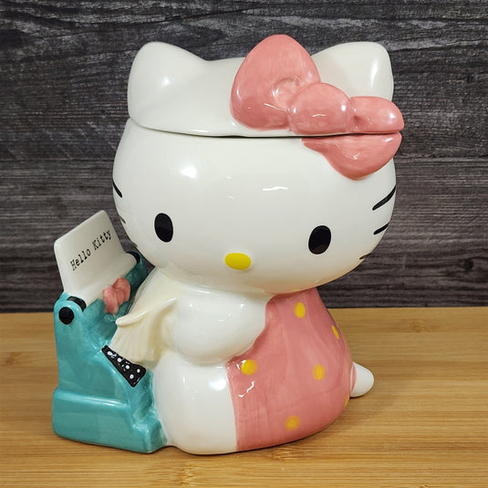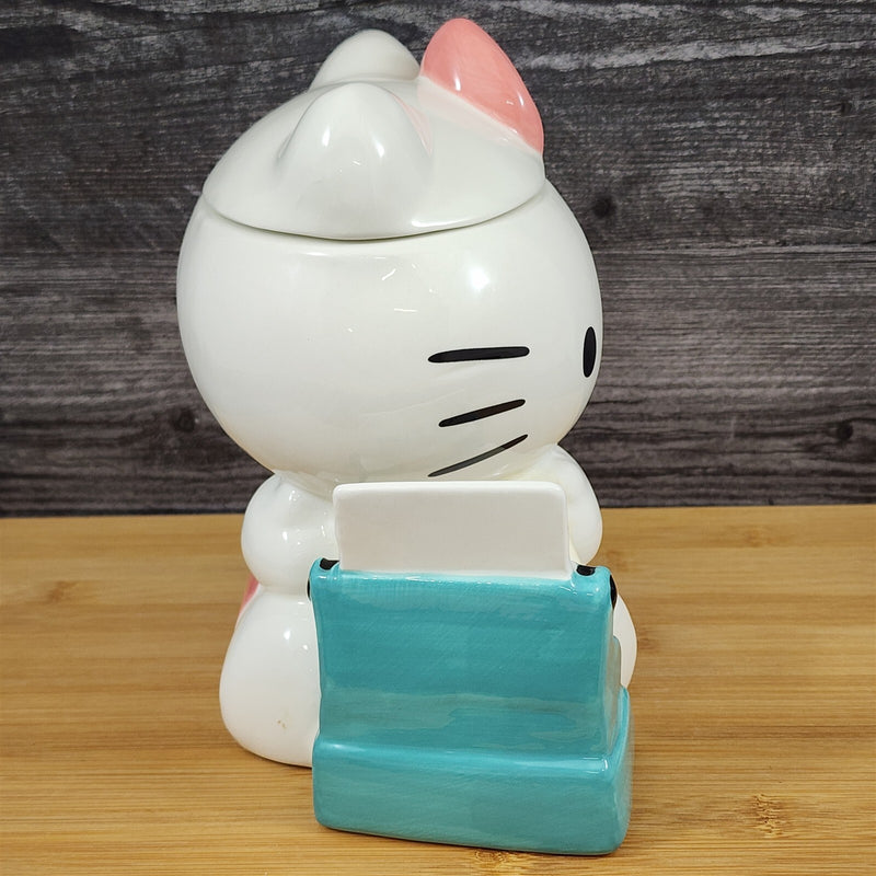 Hello Kitty Retro Typewriter Cookie Snack Jar Classic Ceramic Blue Sky Embossed